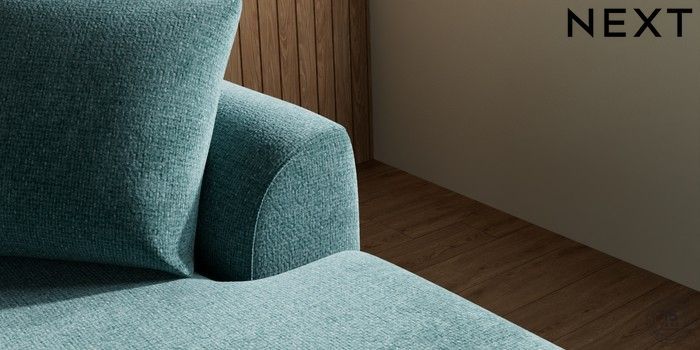 7.2.10 Buy Parker Medium Sofa Chaise - Right Hand Chunky Chenille Mid Teal Green High Metal - Brass from the Next UK online shop Click here to use our accessible website