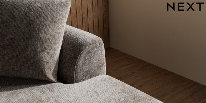 7.2.4 Buy Parker Medium Sofa Chaise - Right Hand Chunky Chenille Mink Brown Low Retro Tapered - Light from the Next UK online shop Click here to use our accessible website