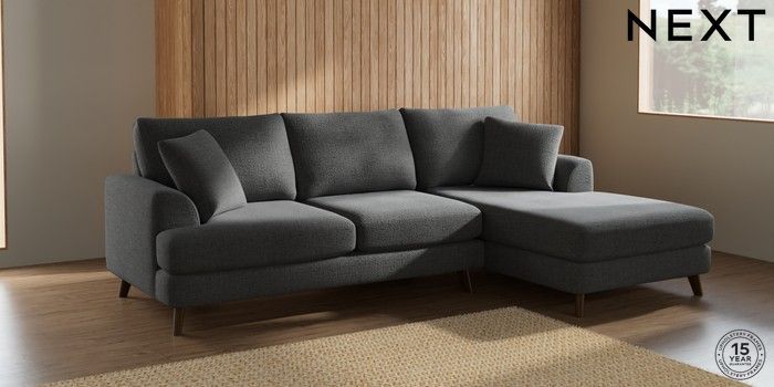 7.2.5 Buy Parker Medium Sofa Chaise - Right Hand Chunky Texture Dark Grey Low Retro Tapered - Mid from the Next UK online shop Click here to use our accessible website