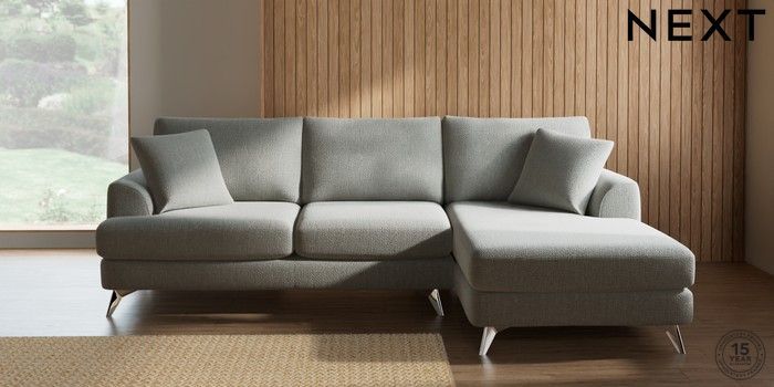 7.2.10 Buy Parker Medium Sofa Chaise - Right Hand Chunky Texture Dove High Metal - Chrome from the Next UK online shop Click here to use our accessible website