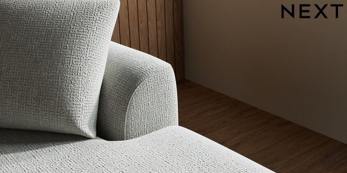 7.2.10 Buy Parker Medium Sofa Chaise - Right Hand Chunky Texture Dove Low Retro Tapered - Light from the Next UK online shop Click here to use our accessible website