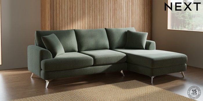 7.2.5 Buy Parker Medium Sofa Chaise - Right Hand Chunky Texture Mid Forest Green High Metal - Chrome from the Next UK online shop Click here to use our accessible website