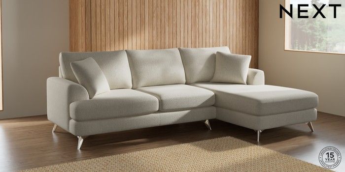 7.2.5 Buy Parker Medium Sofa Chaise - Right Hand Chunky Texture Oyster High Metal - Chrome from the Next UK online shop Click here to use our accessible website