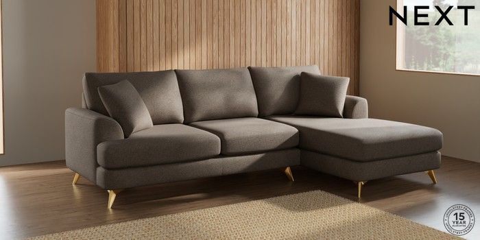 7.2.5 Buy Parker Medium Sofa Chaise - Right Hand Chunky Weave Dark Natural High Metal - Brass from the Next UK online shop Click here to use our accessible website