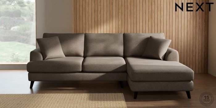 7.2.10 Buy Parker Medium Sofa Chaise - Right Hand Chunky Weave Dark Natural Low Retro Tapered - Dark from the Next UK online shop Click here to use our accessible website