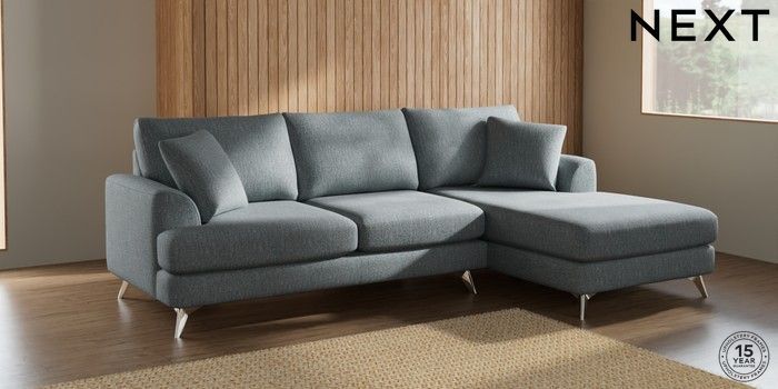 7.2.5 Buy Parker Medium Sofa Chaise - Right Hand Chunky Weave Mid Blue High Metal - Chrome from the Next UK online shop Click here to use our accessible website