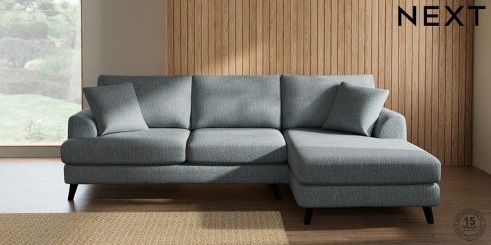 7.2.10 Buy Parker Medium Sofa Chaise - Right Hand Chunky Weave Mid Blue Low Retro Tapered - Dark from the Next UK online shop Click here to use our accessible website
