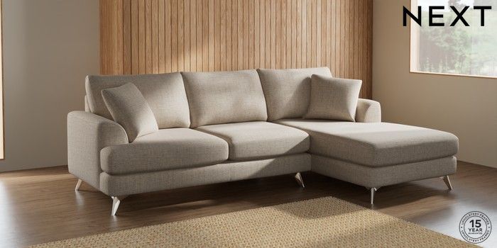 7.2.5 Buy Parker Medium Sofa Chaise - Right Hand Chunky Weave Mid Natural High Metal - Chrome from the Next UK online shop Click here to use our accessible website