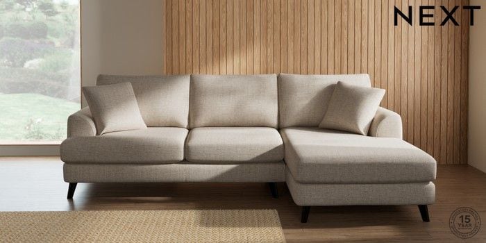 7.2.10 Buy Parker Medium Sofa Chaise - Right Hand Chunky Weave Mid Natural Low Retro Tapered - Dark from the Next UK online shop Click here to use our accessible website