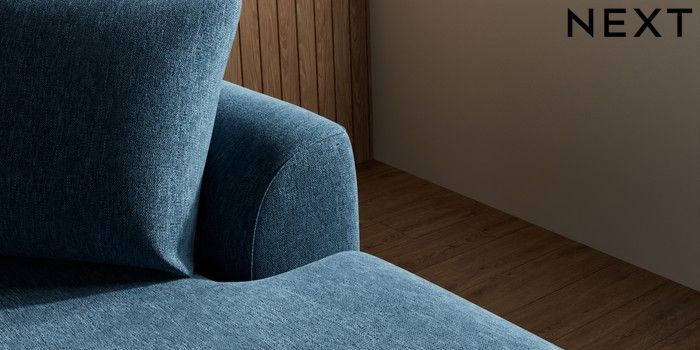 7.2.10 Buy Parker Medium Sofa Chaise - Right Hand Cotswold Chenille Dark Blue High Metal - Chrome from the Next UK online shop Click here to use our accessible website
