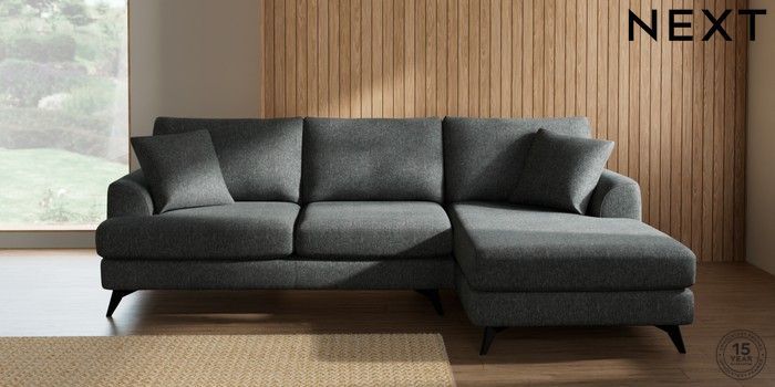 7.2.10 Buy Parker Medium Sofa Chaise - Right Hand Cotswold Chenille Dark Grey High Metal - Black from the Next UK online shop Click here to use our accessible website