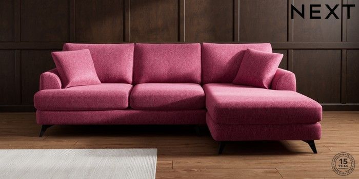 7.2.10 Buy Parker Medium Sofa Chaise - Right Hand Cotswold Chenille Dark Raspberry Pink High Metal - Black from the Next UK online shop Click here to use our accessible website