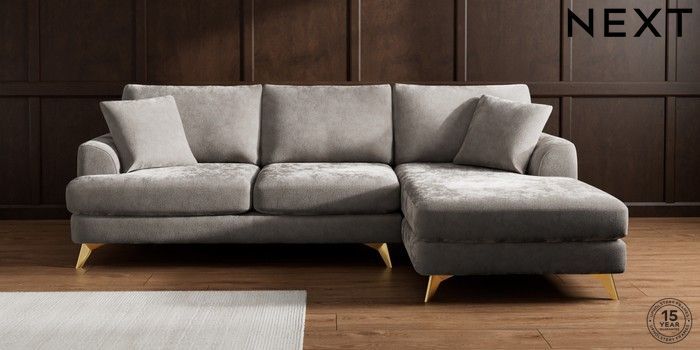 7.3.1 Buy Parker Medium Sofa Chaise - Right Hand Distressed Velour French Grey High Metal - Brass from the Next UK online shop Click here to use our accessible website