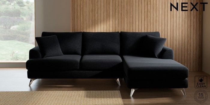 7.2.10 Buy Parker Medium Sofa Chaise - Right Hand Fine Chenille Easy Clean Black High Metal - Chrome from the Next UK online shop Click here to use our accessible website