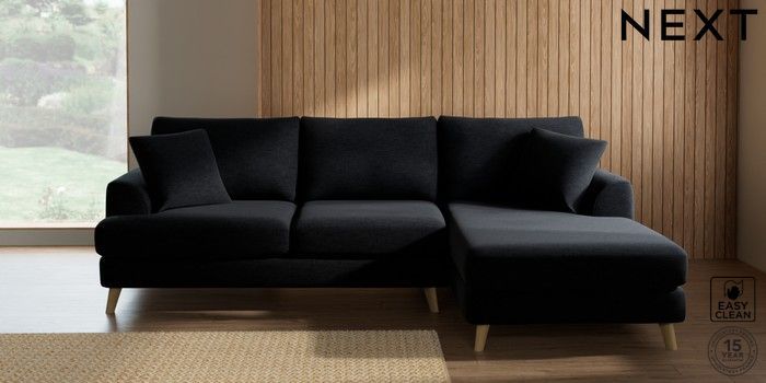 7.2.10 Buy Parker Medium Sofa Chaise - Right Hand Fine Chenille Easy Clean Black Low Retro Tapered - Light from the Next UK online shop Click here to use our accessible website
