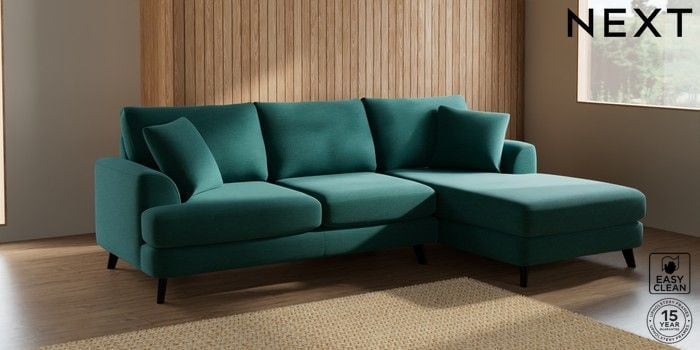 7.2.4 Buy Parker Medium Sofa Chaise - Right Hand Fine Chenille Easy Clean Dark Juniper Green Low Retro Tapered - Dark from the Next UK online shop Click here to use our accessible website