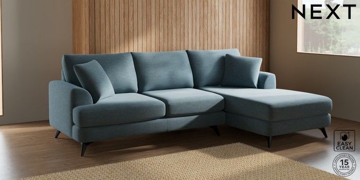 7.2.5 Buy Parker Medium Sofa Chaise - Right Hand Fine Chenille Easy Clean Mid Blue High Metal - Black from the Next UK online shop Click here to use our accessible website