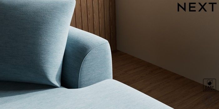 7.2.10 Buy Parker Medium Sofa Chaise - Right Hand Fine Chenille Easy Clean Mid Blue Low Retro Tapered - Light from the Next UK online shop Click here to use our accessible website