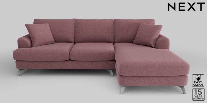 6.12.1 Buy Parker Medium Sofa Chaise - Right Hand Fine Chenille Easy Clean Mid Mulberry Purple High Metal - Black from the Next UK online shop Click here to use our accessible website