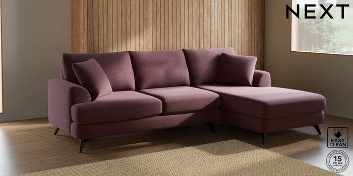 7.2.5 Buy Parker Medium Sofa Chaise - Right Hand Fine Chenille Easy Clean Mid Mulberry Purple High Metal - Black from the Next UK online shop Click here to use our accessible website