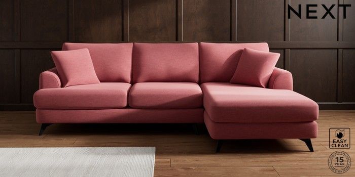 7.2.10 Buy Parker Medium Sofa Chaise - Right Hand Fine Chenille Easy Clean Mid Pink High Metal - Black from the Next UK online shop Click here to use our accessible website