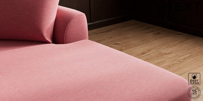 7.3.1 Buy Parker Medium Sofa Chaise - Right Hand Fine Chenille Easy Clean Mid Pink High Metal - Brass from the Next UK online shop Click here to use our accessible website