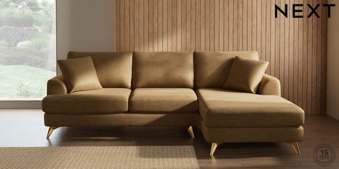 7.0.3 Buy Parker Medium Sofa Chaise - Right Hand Luxe Chenille Honey Yellow High Metal - Brass from the Next UK online shop Click here to use our accessible website