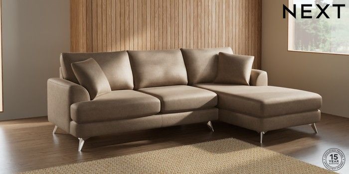 7.2.5 Buy Parker Medium Sofa Chaise - Right Hand Luxe Chenille Mid Camel Beige High Metal - Chrome from the Next UK online shop Click here to use our accessible website