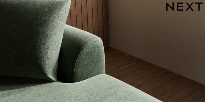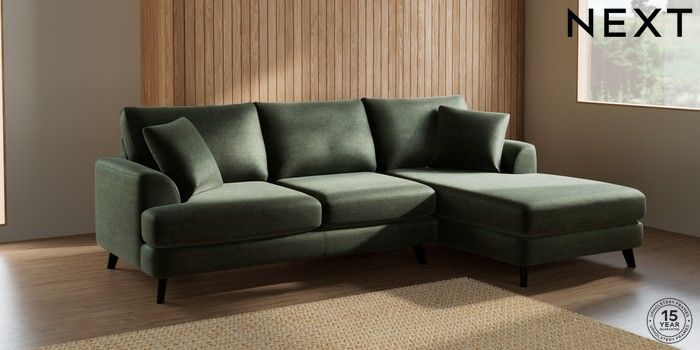 7.0.3 Buy Parker Medium Sofa Chaise - Right Hand Luxe Chenille Mid Green Low Retro Tapered - Dark from the Next UK online shop Click here to use our accessible website