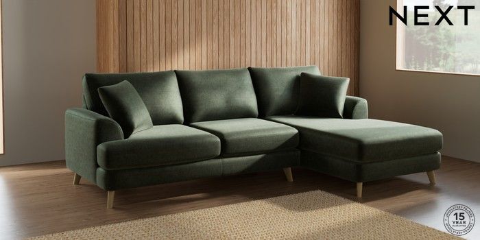 7.0.3 Buy Parker Medium Sofa Chaise - Right Hand Luxe Chenille Mid Green Low Retro Tapered - Light from the Next UK online shop Click here to use our accessible website
