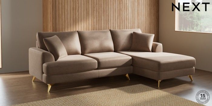 7.2.5 Buy Parker Medium Sofa Chaise - Right Hand Luxe Chenille Mid Natural High Metal - Brass from the Next UK online shop Click here to use our accessible website