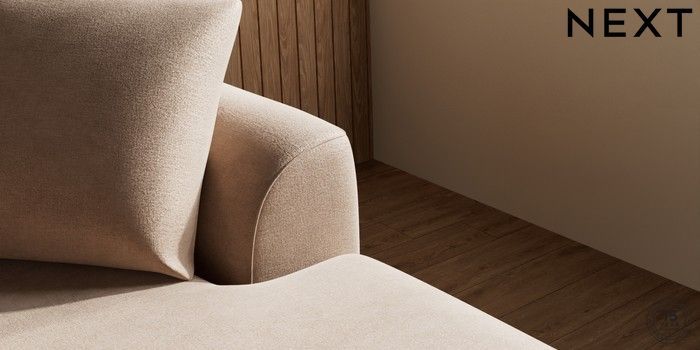 7.2.10 Buy Parker Medium Sofa Chaise - Right Hand Luxe Chenille Mid Natural Low Retro Tapered - Dark from the Next UK online shop Click here to use our accessible website