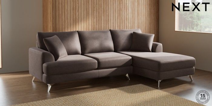 7.2.5 Buy Parker Medium Sofa Chaise - Right Hand Luxe Chenille Mink Brown High Metal - Chrome from the Next UK online shop Click here to use our accessible website