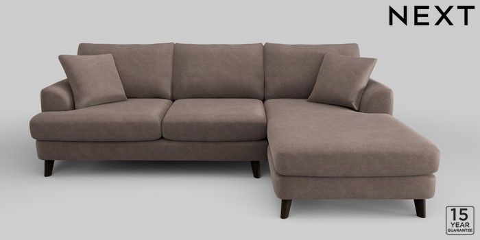 6.12.1 Buy Parker Medium Sofa Chaise - Right Hand Luxe Chenille Mink Brown Low Retro Tapered - Dark from the Next UK online shop Click here to use our accessible website