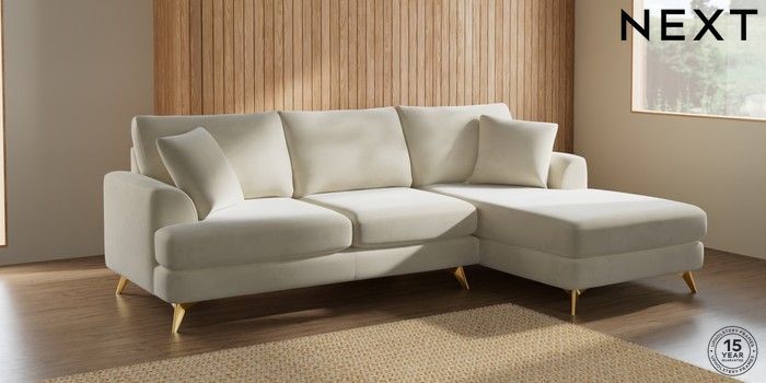 7.0.3 Buy Parker Medium Sofa Chaise - Right Hand Luxe Chenille Oyster High Metal - Brass from the Next UK online shop Click here to use our accessible website