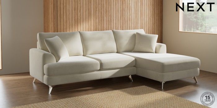 7.0.3 Buy Parker Medium Sofa Chaise - Right Hand Luxe Chenille Oyster High Metal - Chrome from the Next UK online shop Click here to use our accessible website