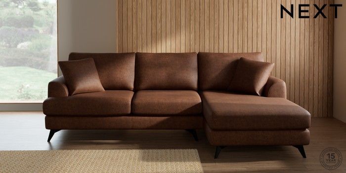 7.3.1 Buy Parker Medium Sofa Chaise - Right Hand Monza Faux Leather Easy Clean Chestnut Brown High Metal - Black from the Next UK online shop Click here to use our accessible website