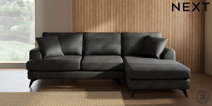 7.3.1 Buy Parker Medium Sofa Chaise - Right Hand Monza Faux Leather Easy Clean Dark Grey High Metal - Black from the Next UK online shop Click here to use our accessible website