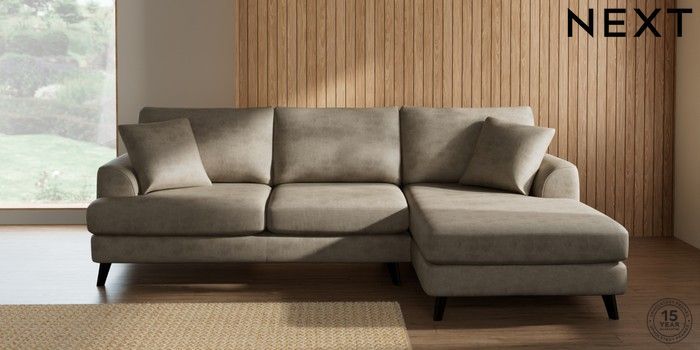7.3.1 Buy Parker Medium Sofa Chaise - Right Hand Monza Faux Leather Easy Clean Mink Brown Low Retro Tapered - Dark from the Next UK online shop Click here to use our accessible website