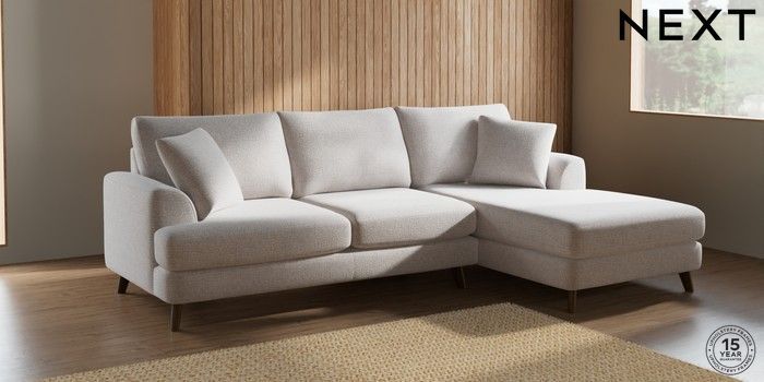 7.2.6 Buy Parker Medium Sofa Chaise - Right Hand Multi Weave Oyster Low Retro Tapered - Mid from the Next UK online shop Click here to use our accessible website