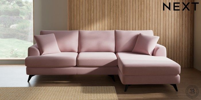 7.2.10 Buy Parker Medium Sofa Chaise - Right Hand Natural Mix Light Rose Pink High Metal - Black from the Next UK online shop Click here to use our accessible website