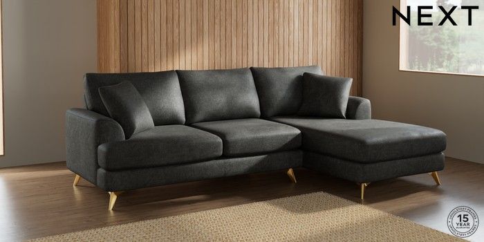 7.2.5 Buy Parker Medium Sofa Chaise - Right Hand Plush Chenille Dark Grey High Metal - Brass from the Next UK online shop Click here to use our accessible website