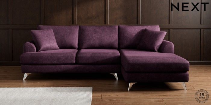 7.3.1 Buy Parker Medium Sofa Chaise - Right Hand Plush Chenille Dark Plum Purple High Metal - Chrome from the Next UK online shop Click here to use our accessible website