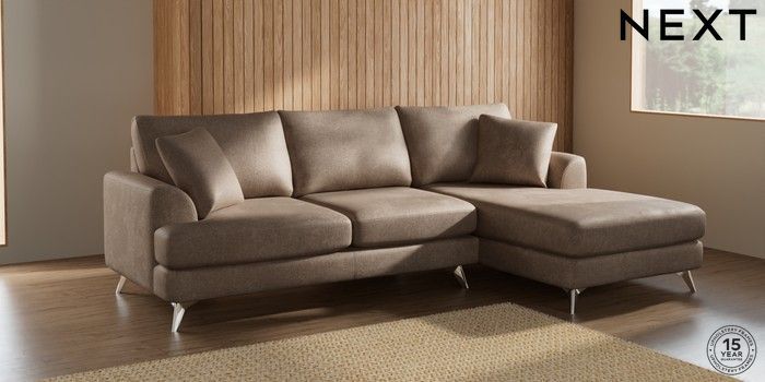 7.2.5 Buy Parker Medium Sofa Chaise - Right Hand Plush Chenille Mid Natural High Metal - Chrome from the Next UK online shop Click here to use our accessible website