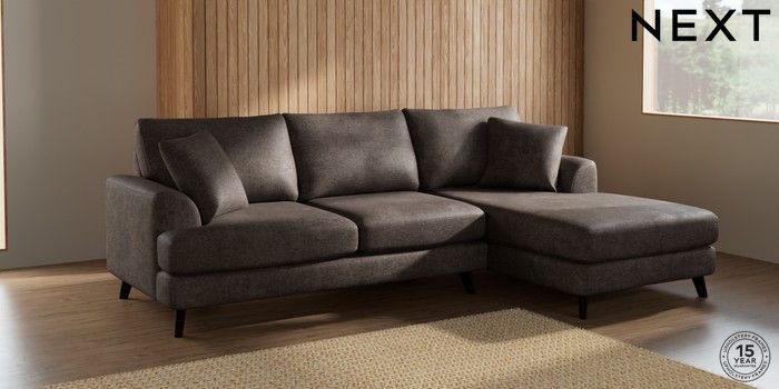7.2.4 Buy Parker Medium Sofa Chaise - Right Hand Plush Chenille Mink Brown Low Retro Tapered - Dark from the Next UK online shop Click here to use our accessible website