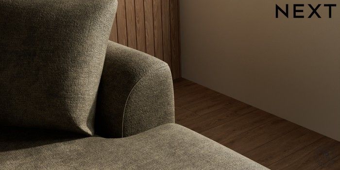 7.2.5 Buy Parker Medium Sofa Chaise - Right Hand Plush Chenille Moss Green Low Retro Tapered - Light from the Next UK online shop Click here to use our accessible website