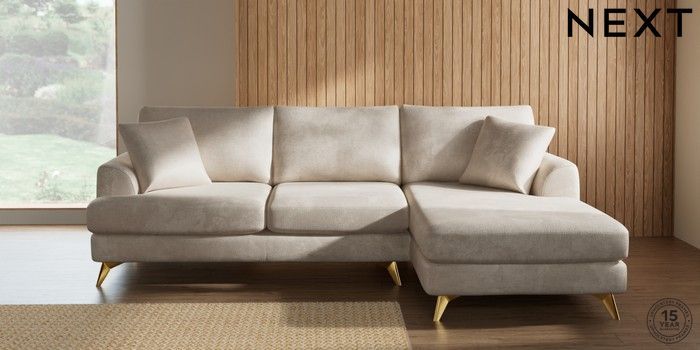 7.2.10 Buy Parker Medium Sofa Chaise - Right Hand Plush Chenille Oyster High Metal - Brass from the Next UK online shop Click here to use our accessible website