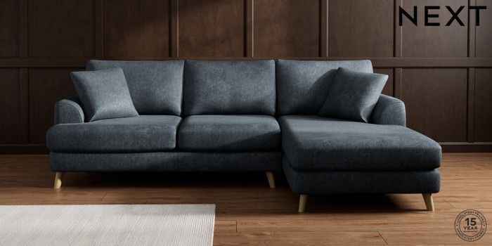 7.2.4 Buy Parker Medium Sofa Chaise - Right Hand Plush Chenille Slate Blue Low Retro Tapered - Light from the Next UK online shop Click here to use our accessible website