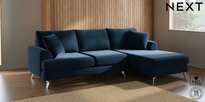 7.2.5 Buy Parker Medium Sofa Chaise - Right Hand Plush Velvet Easy Clean Airforce Blue High Metal - Chrome from the Next UK online shop Click here to use our accessible website