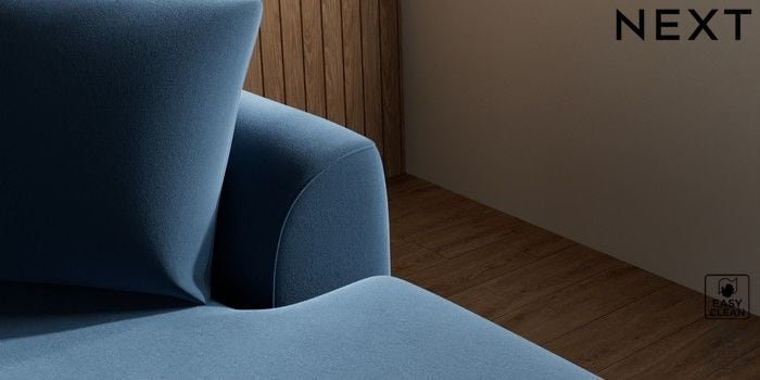 7.3.1 Buy Parker Medium Sofa Chaise - Right Hand Plush Velvet Easy Clean Airforce Blue Low Retro Tapered - Mid from the Next UK online shop Click here to use our accessible website